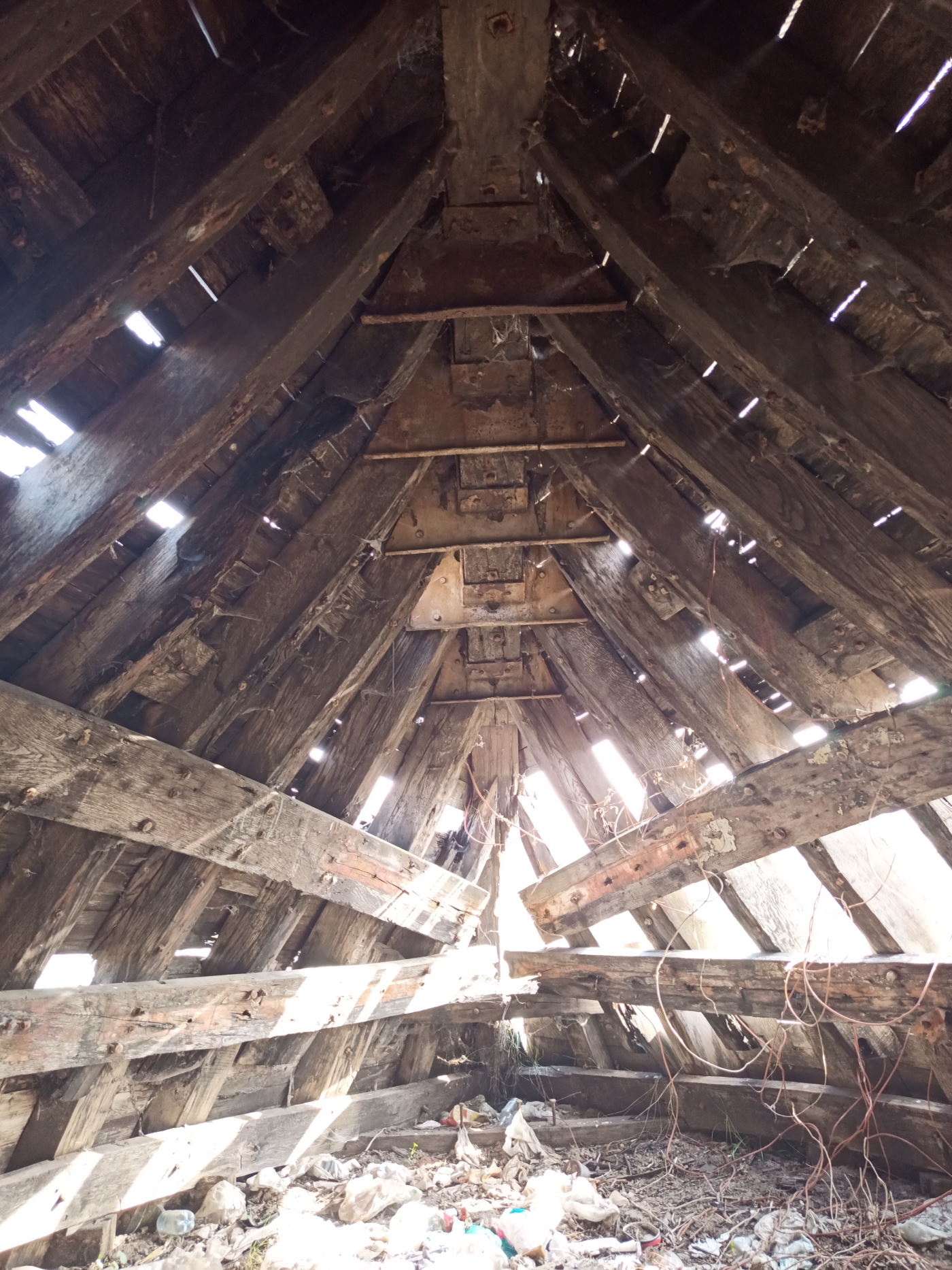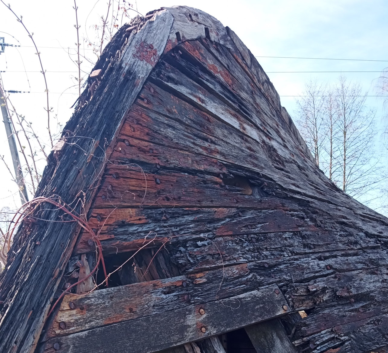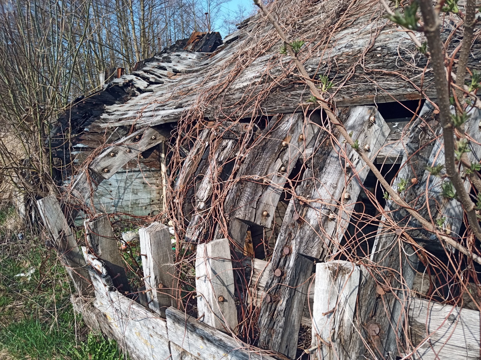 Przy okazji pobliskiej roboty, natknąłem się w Ustce na truchło jednostki. Niby współczesna, ale konstrukcja drewniana. Budowniczowie chyba czerpali z Mondfelda. Dzisiaj to już tylko siedlisko śmieci i menelstwa, a przyroda pochłania resztki.