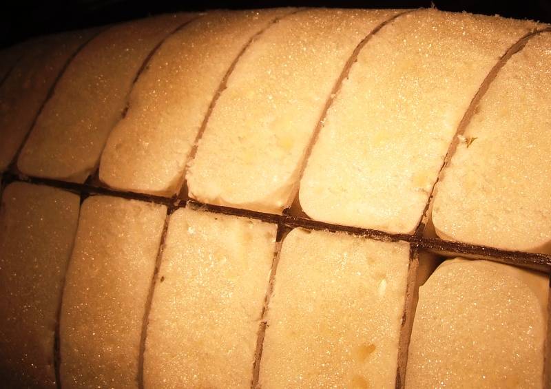 Obcinamy długim ostrym nożem.