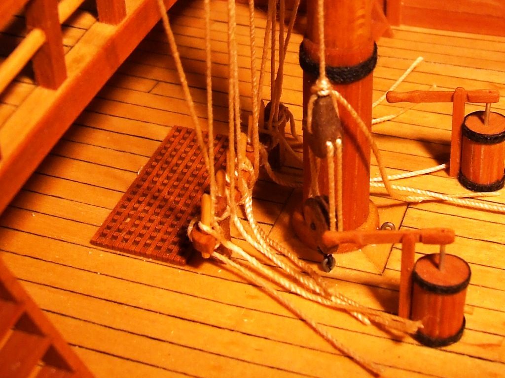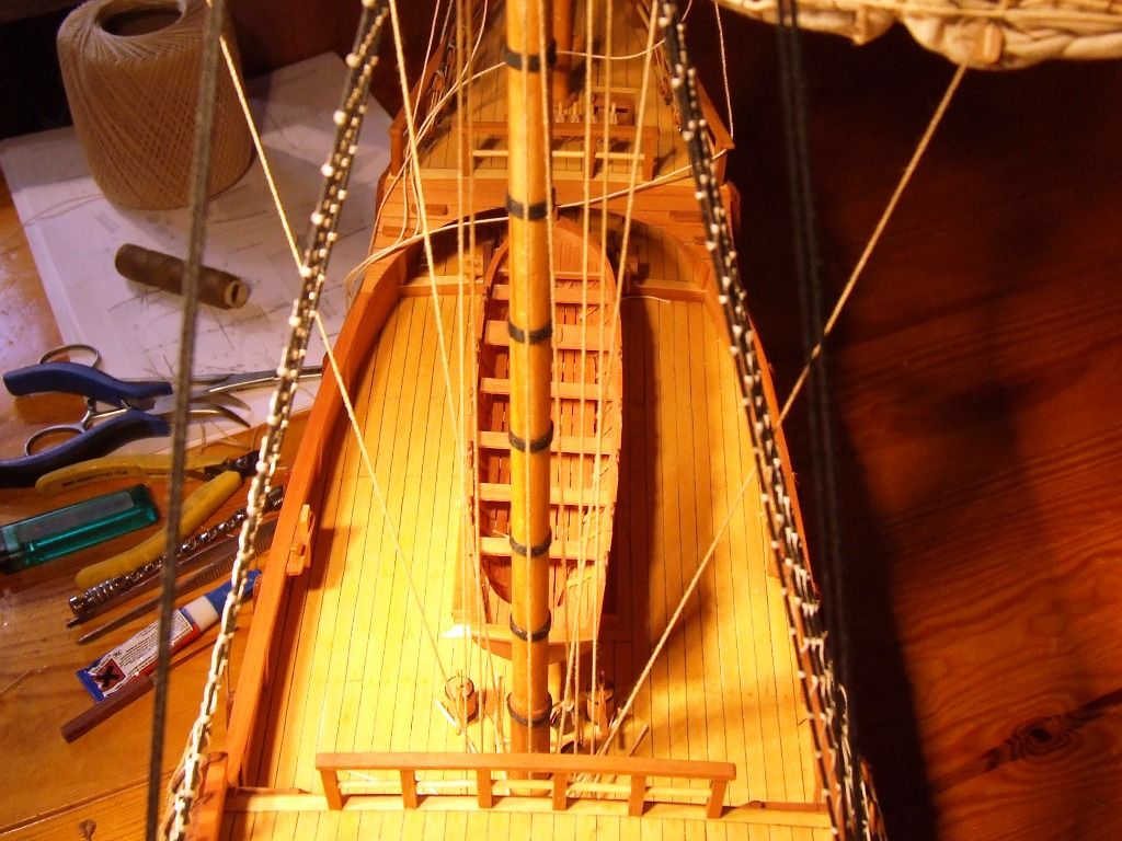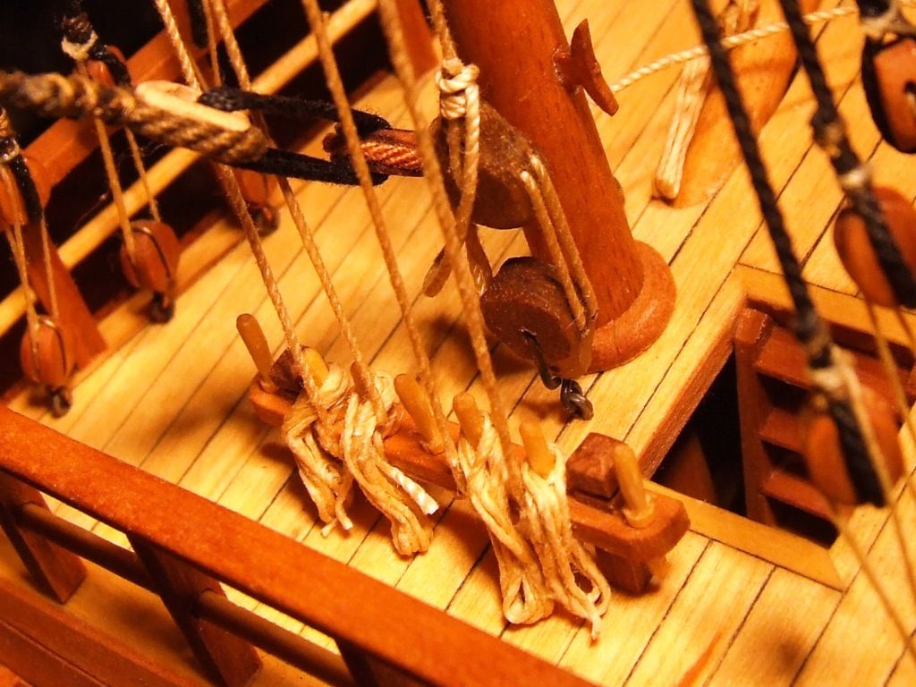 Maskowanie zakończeń. Tu akurat końcówki lin na knagach.