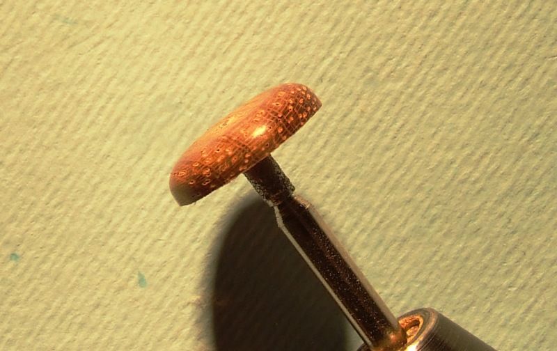 A rozwiercam stopniowo wiertłami o większych fi. Z racji tego iż w chwili obecnej posiadam największe wiertło fi 5mm resztę niepożądanego materiału wypiłowałem iglakiem do drewna... całość wyszlifowana i efekt na fotce. Tu pragnę zaznaczyć, że rozwiercam ręcznie trzymając wiertła w palcach. Mimo szerokości obręczy nieco ponad 1mm, nie pękła... trzeba to po prostu robić z wyczuciem