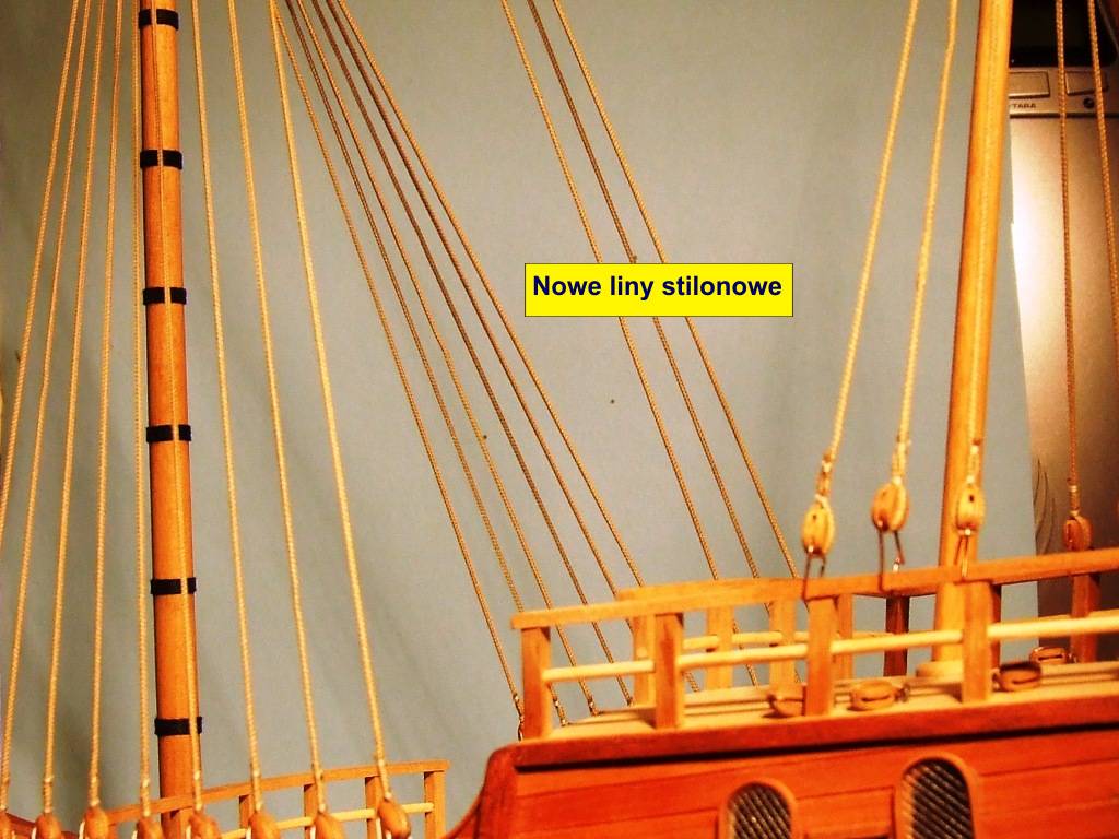 Linki na wanty według mnie super. Ja kiedyś jak robiłem to czerniłem linki za pomocą farby drukarskiej która mi zostałą z czasów konspiracji. Fajnie to wyglądało i były matowe to dawało efekt a potem w rozrzedzonym nitrocelionie ( nie miałem nic innego) nawilżałem. Metodą prób i błędów naciągałem aż maszt do tyłu sie nachylał a jak sie zaczynały rozciągać to naciągałem liną sztagową :) (Qurde chyba dobrze napisalem nazwe liny ale coś mi jeszcze w glowie kołacze z tamtych czasów)