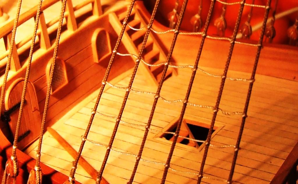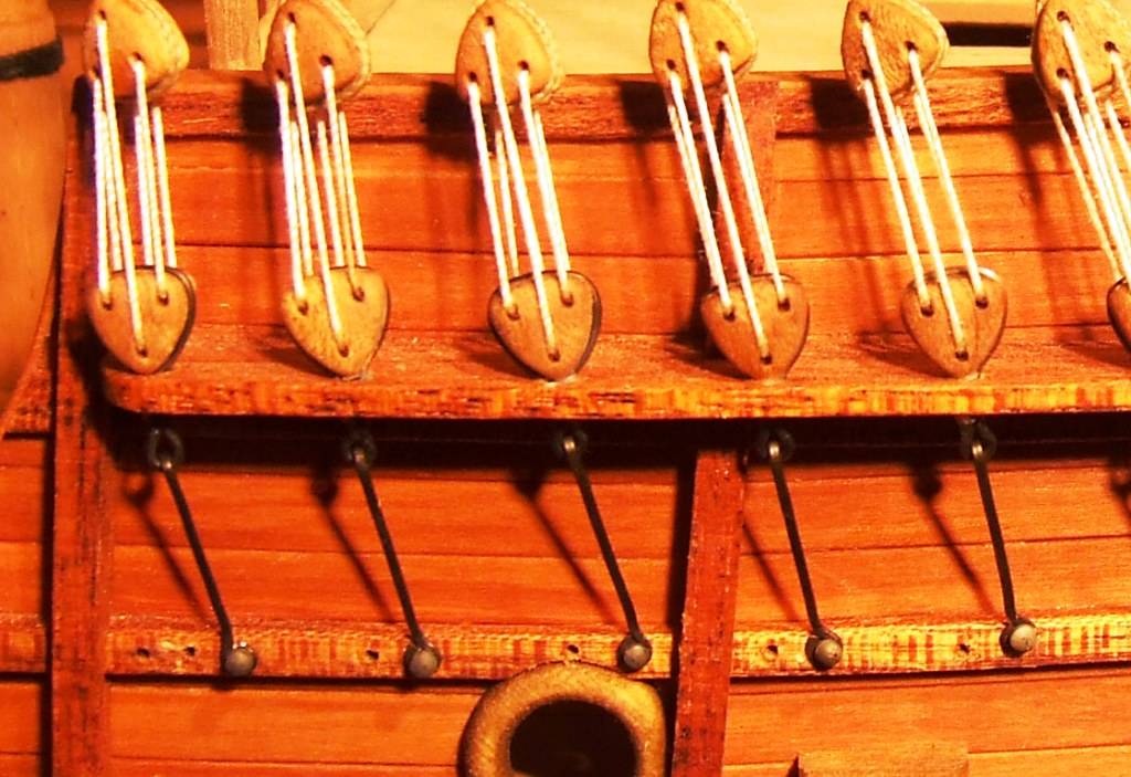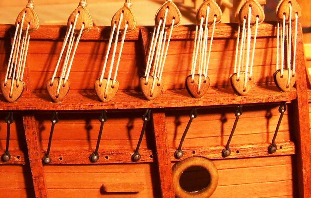 Ja stosuję prawidłowy sposób wiązania,chociaż sprawia mi to sporo problemów np. przy 12 wantach.Wanty są różnej grubości czasami niewiele grubsze od wyblinki do tego "smołowane"a więc trochę sztywne i przebijanie igłą sprawiało by jeszcze większy problem.Idziesz trochę na skróty.Wykonałeś wanty z jakiejś plecionki i nie czernione.Model wykonany bardzo dobrze i niepotrzebnie tak upraszczasz.Tam gdzie można stosuj techniki zastępcze ale olinowanie musi być prawidłowe bo to wizytówka modelu.R