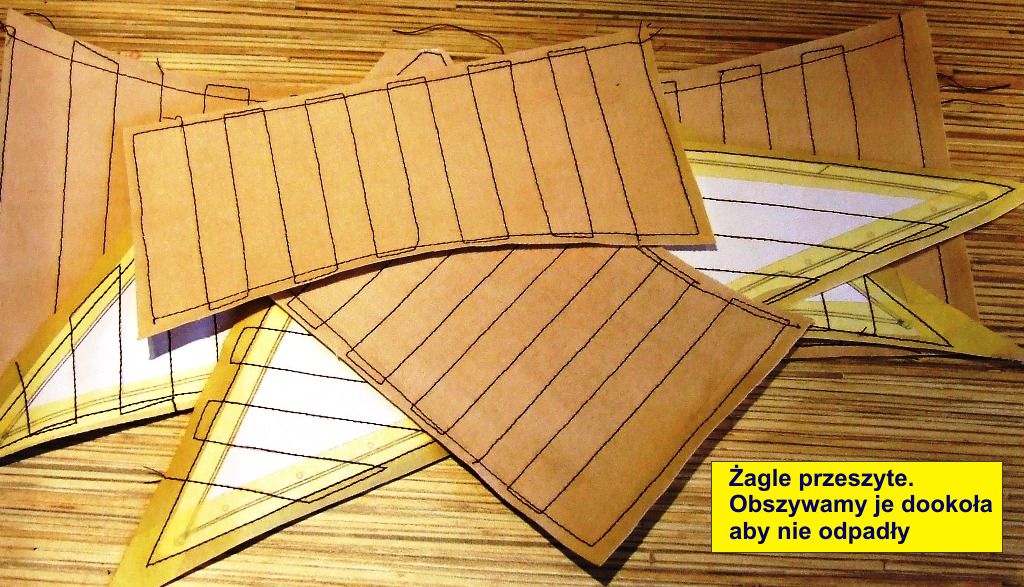 Najlepiej jest jeszcze dodatkowo obszyć żagle dookoła.