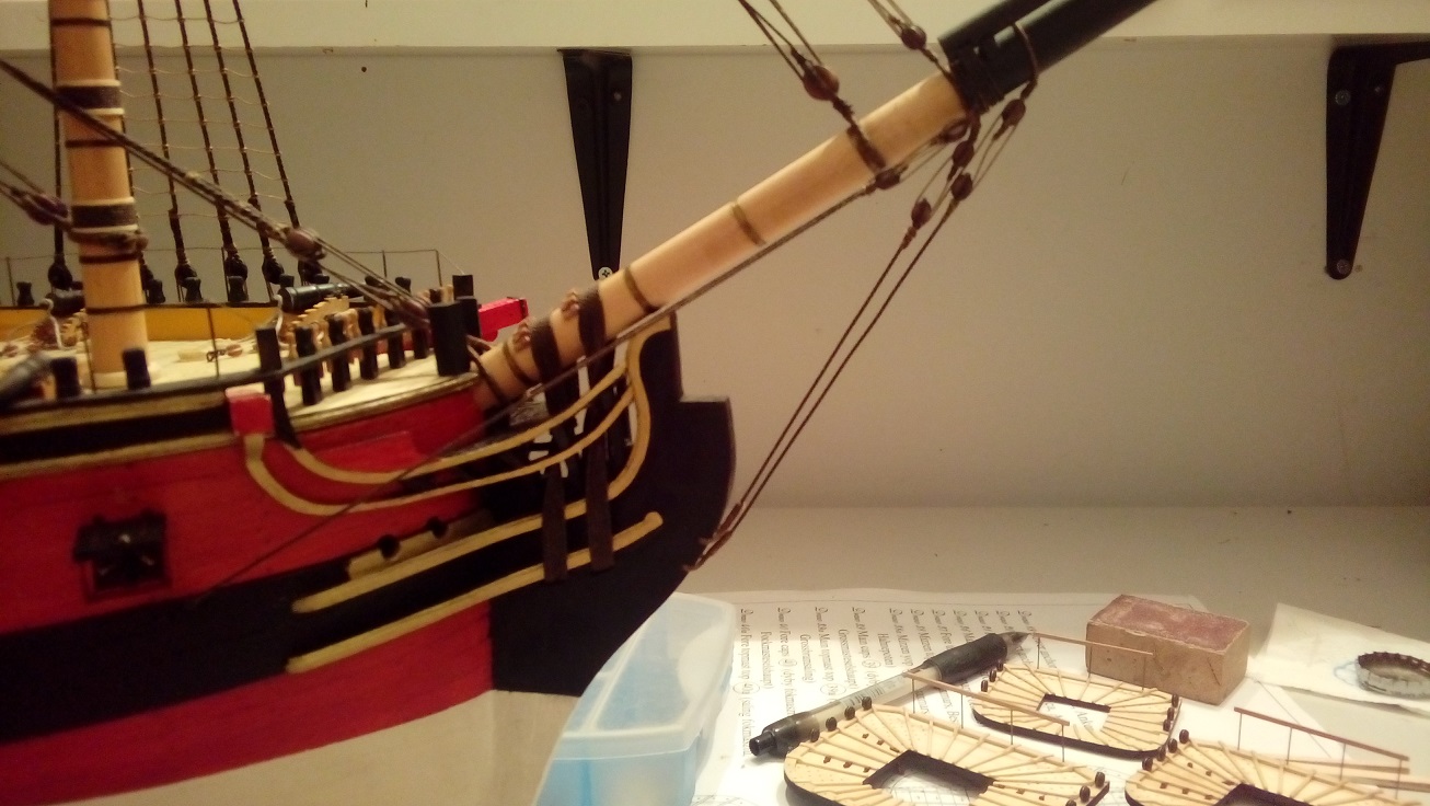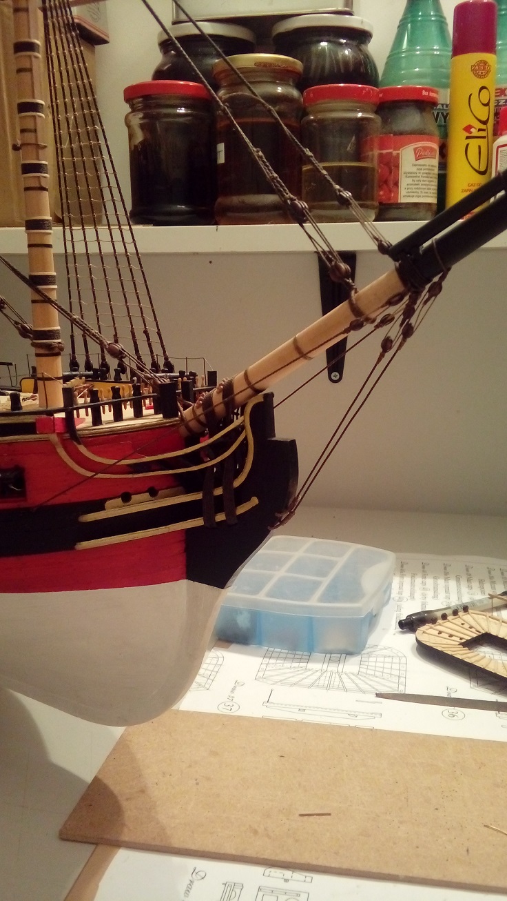 Ciąg dalszy prac, kolumny masztów i bukszpryt na razie na tym etapie wykończenia.