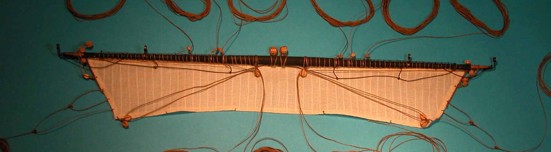 Aby usunac zagiel z poszczegolnych "hanks", odpinano go z owych hanksow, przesuwajac te drewniane toggle (koleczki) przez petle linki - jak na ilustracji - tu pozycja odpieta.