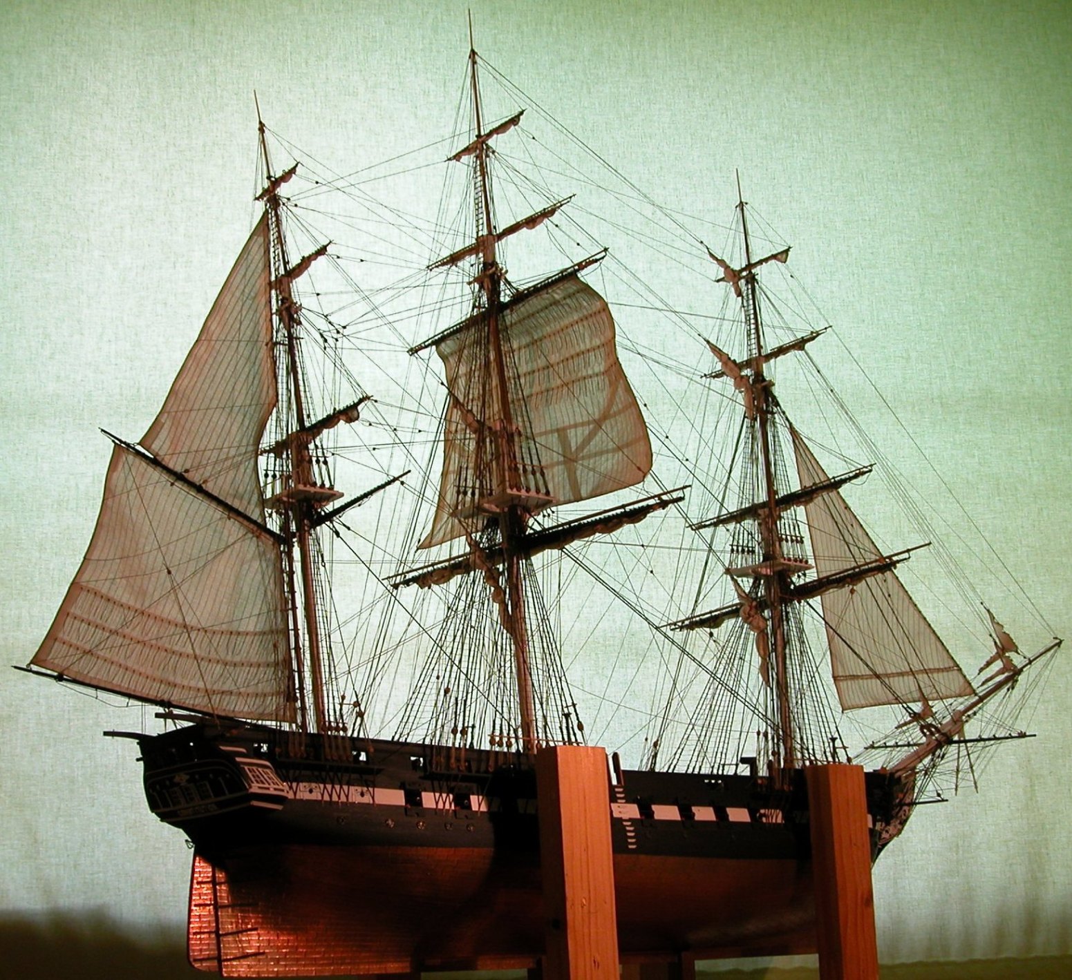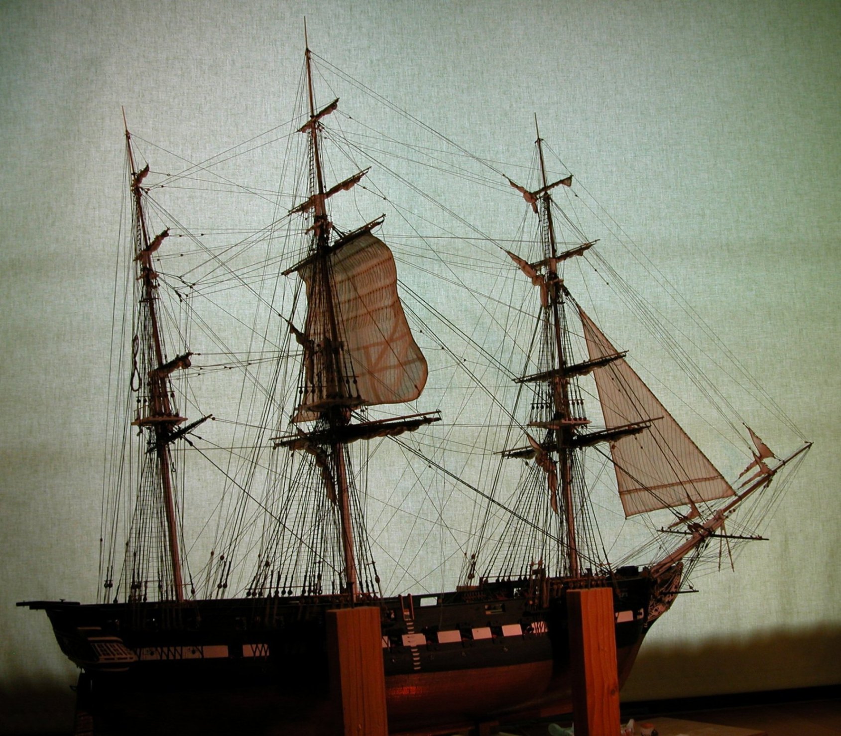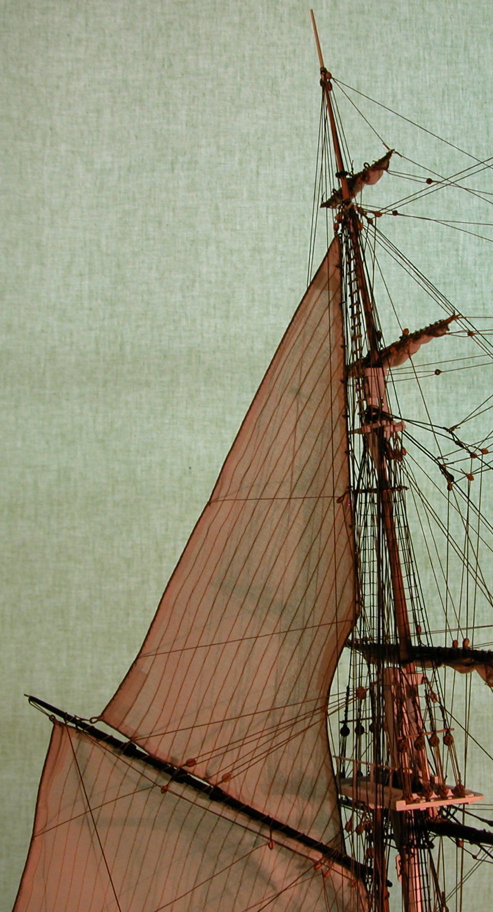 Uff, skończyłem żagle rejowe na bezanmaszcie. Pozostał tylko bezan (sterżagiel) i marsgafel. Jest nadzieja, że się wyrobię.
