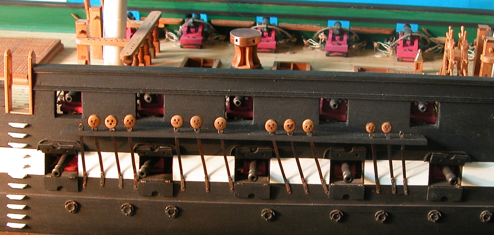 6. W rezultacie, w czasie gdy lizele nie były postawione, większość (wszystkie???) lin do ich obsługi biegła od pokładu do odpowiedniego bloku przy maszcie (ew. przy jednej z głównych rei) i spowrotem na pokład.