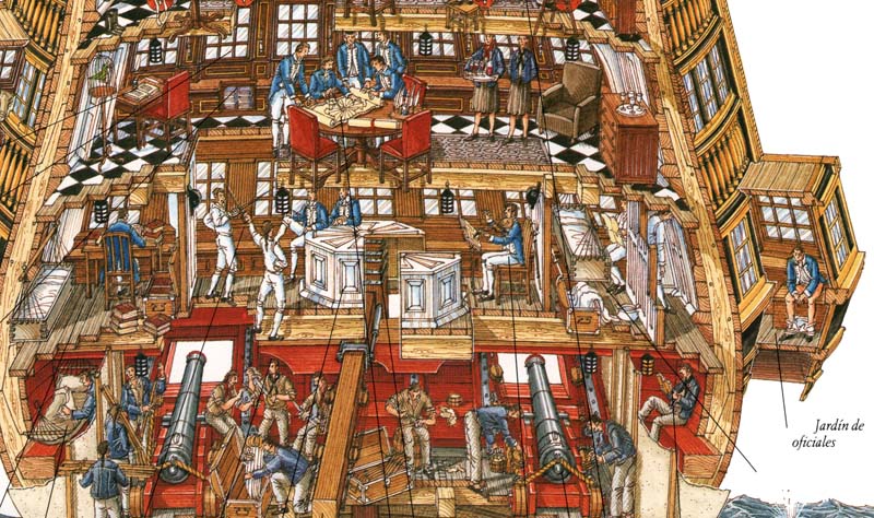 W Twoim rozwiązaniu nie dostrzegam międzypokładu z mesą i kajutami oficerów. Brak tego pokładu i oficerów wyjaśniałby czemu sprzymierzone siły francusko-hiszpańskie przegrały pod Trafalgarem i czemu Santisima Trinidad stała się (na krótko) pryzem brytyjskim