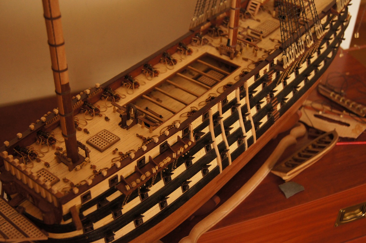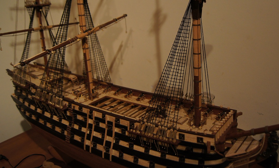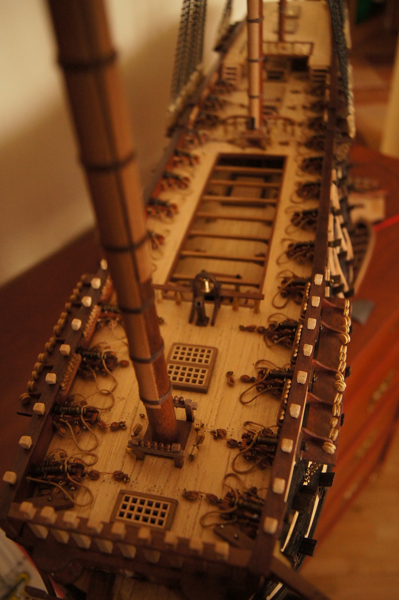 Cześć wszystkim:) Od miesiąca dłubię drobnicę pokładową. Dzisiaj skończyłem instalować ostatnie działa, a kilka dni temu zamocowałem pokładniki. Nie mogę uwierzyć, że przez półtora roku nie mogłem się zdobyć na skończenie pokładu. Wreszcie jakoś to wygląda.