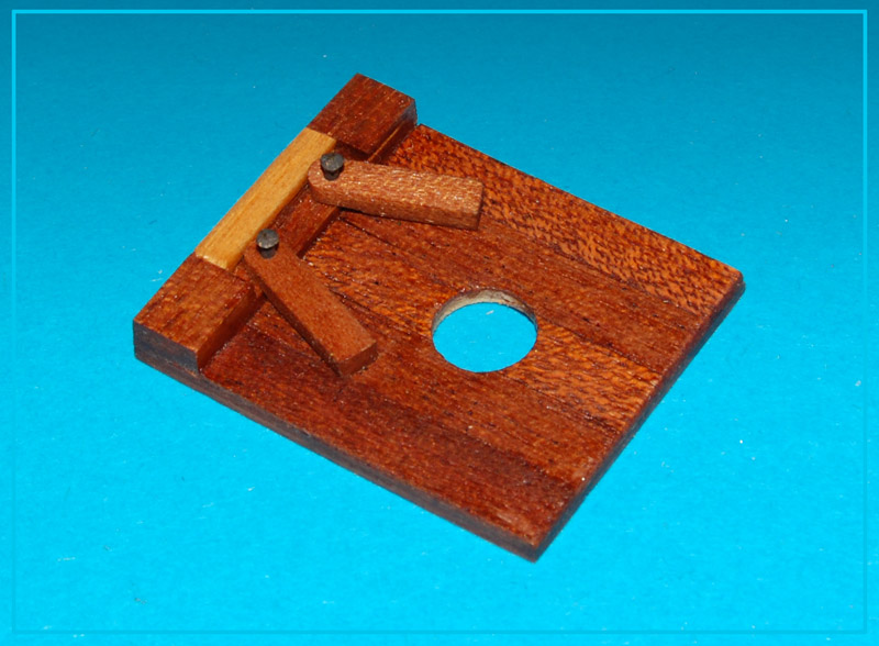 Na podstawę nakleiłem listwy desek, z listewki 2 x 2 mm zrobiłem zapadki, z mosiężnego drutu ø= 0,7 mm zrobiłem gwoździe rozklepując łepek.