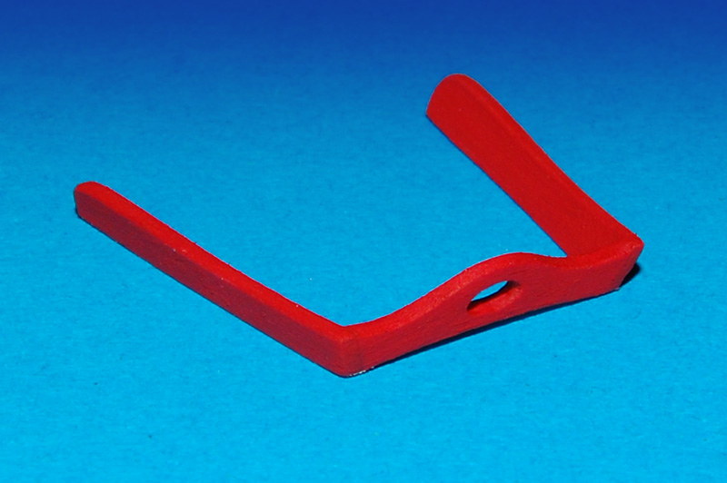 Na burtach namalowałem czerwone pasy. Tu dodam, że pod malowanie optymalnie najlepszym rozwiązaniem byłoby naklejenie ostatniej planki z jasnego forniru (takiego jak na detalu czyli brzozy), wtedy intensywność nasycenia czerwieni byłaby taka sama jak detalu na rufie.