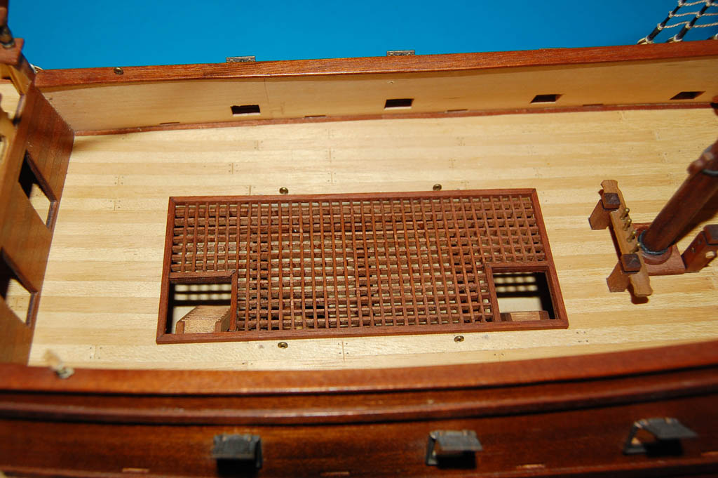 Czy jestes pewien, ze szalupa spoczywala na takich wspornikach, jak pokazales na dwoch ostatnich zdjeciach? Boje sie, ze pod wplywem ciezaru tej szalupy, lekka i delikatna konstrukcja gretingu moglaby nie wytrzymac i po prostu zarwac sie (nie mowie o Twym modelu, ale o pelnowymiarowym zaglowcu).