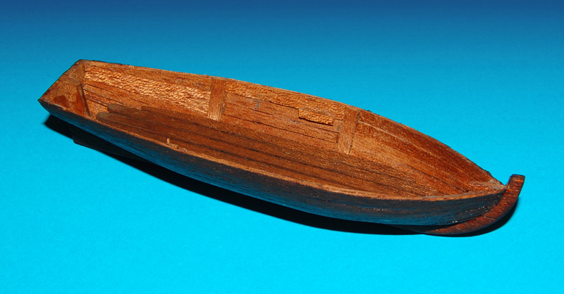 Mając obecnie lepsze wzorce (i o wiele większe doświadczenie w budowie szalup ;-) ) mógłbym pokusić się o wykonanie nowej (może kiedyś, w dalszej przyszłości ;-) ), ale mimo, że ta jest krzywa, niezbyt poprawna co do epoki, więc tylko poprawię to, co mi się w niej nie podoba.