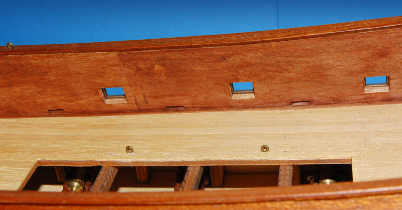 Na górnym pokładzie, wewnątrz ambrazur będę wklejał czerwone ramki, na dolnym ze względu na armaty jest to niemożliwe, więc na próbę pomalowałem ramkę: