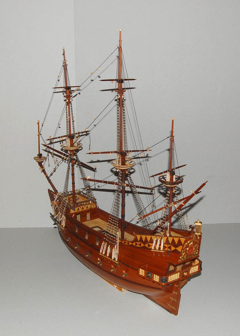Od początku budowy zdecydowałem, że model ma mieć cechy ozdoby, a nie dokładnej kopi jakiejś konkretnej jednostki (z braku niestety wzorca). Model budowałem w większości z własnych materiałów opierając się jednak na instrukcji kolekcji "Galeon" (wiadomego wydawnictwa), gdyż taka stylistyka przypadła mi do gustu (wtedy).