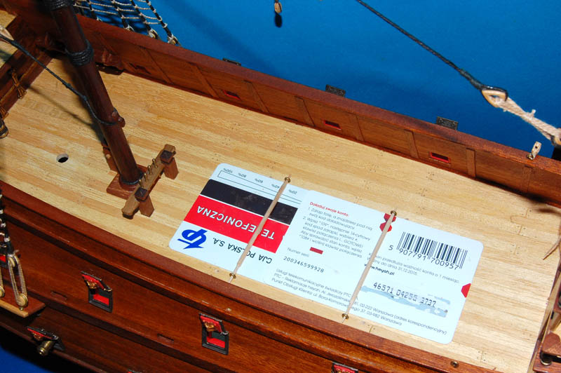 Na zdjęciach to hop, siup i gotowe ;-) , niestety ze względu na dość nieciekawą pozycję przy wklejaniu trwało to kilka dni, otaklowanie (maszty, wanty, sztagi, paduny) też nie pomagało :lol: