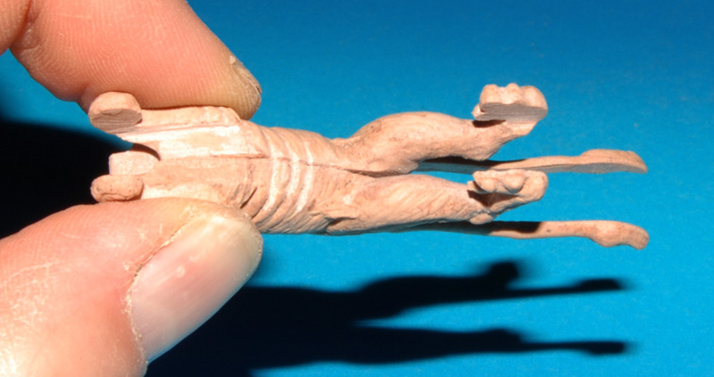 a w pierwszy odlew "dolałem" podbrzusze (czyli go "pogrubasiłem") i wewnętrzne tylne łapy - do połowy grubości iglicy