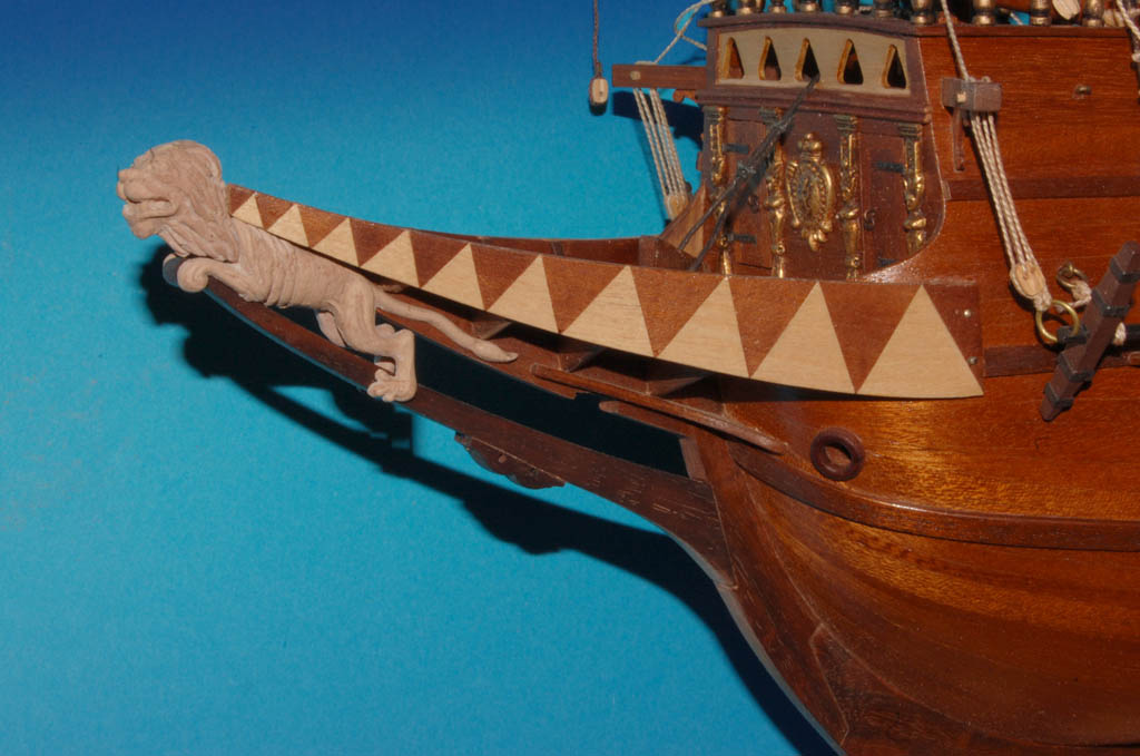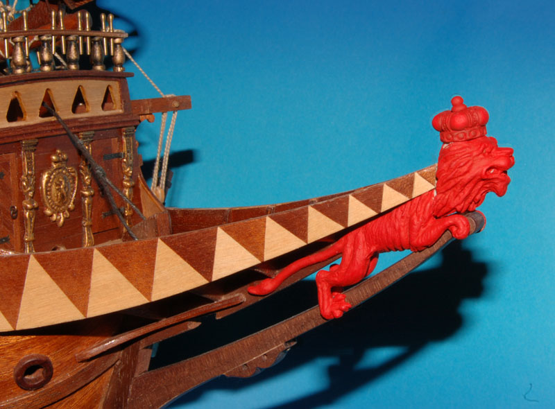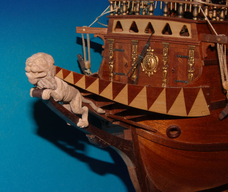 Model lwa mam, teraz trzeba podjąć decyzję jaką ma mieć kolorystykę, bo możliwości jest kilka: od drewnianych, poprzez malowane do całkowicie lub częściowo złoconych. Gwoli ścisłości złoto (lub imitacje) było stosowane w modelach, w rzeczywistości stosowano farbę, że zacytuję z artykułu p. Krzysztofa Gerlacha - "...Miejsca rzekomo złocone (rzeźby) z reguły pokrywano naprawdę tylko żółcią neapolitańską. ..."