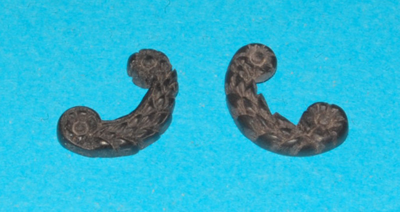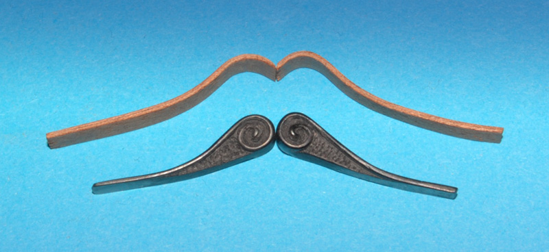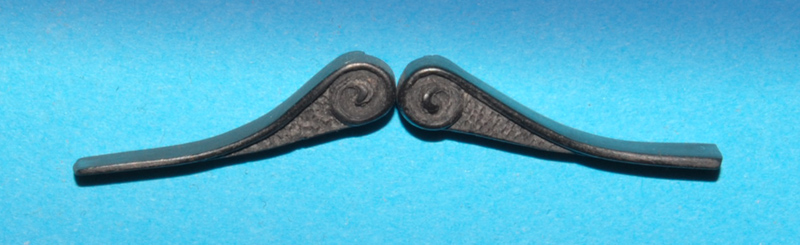 Przy wklejaniu tych ozdób odkryłem nową zaletę odlewów z Distalu, mianowicie po lekkim nagrzaniu suszarką element staje się miękki, elastyczny i daje się uformować do pożądanego kształtu (skorzystałem z tej metody przy drugim detalu), po krótkim czasie znów twardnieje. Nawet po kilku, kilkunastu dniach można to przeprowadzić. Na starszych odlewach to już nie działa (zapewne utwardziły się na amen :-P ).