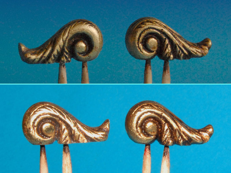 Detale na konsole pomalowałem podkładem, pozłociłem i spatynowałem: