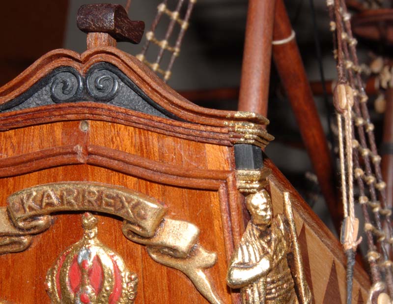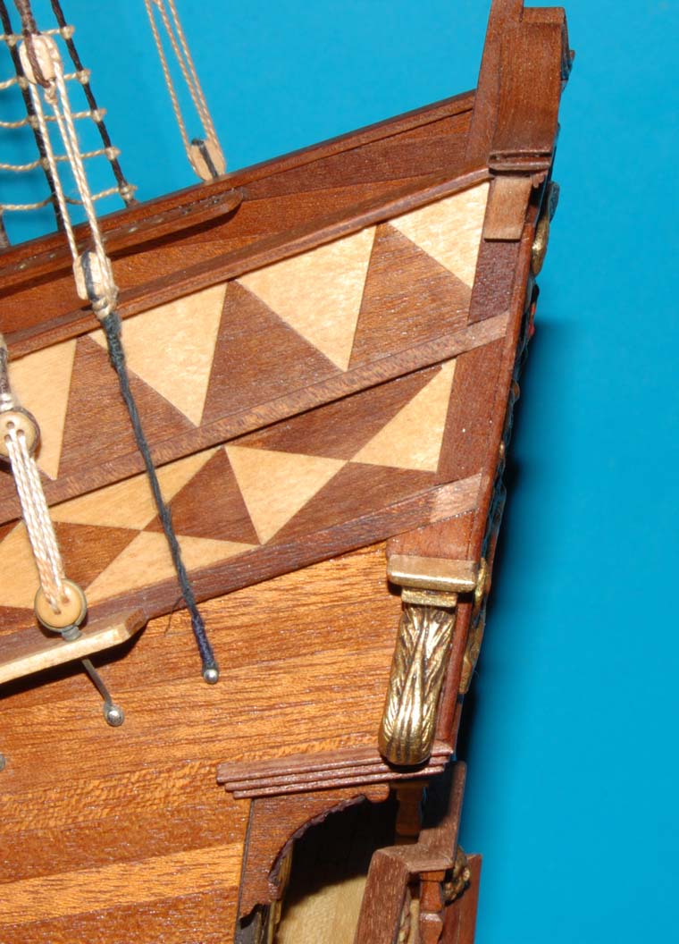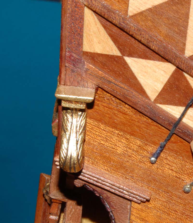 Z listewek forniru wkleiłem też "zaplecki" figur - było to potrzebne, aby wyrównać narożniki burt z ozdobną listwą na pawęży.