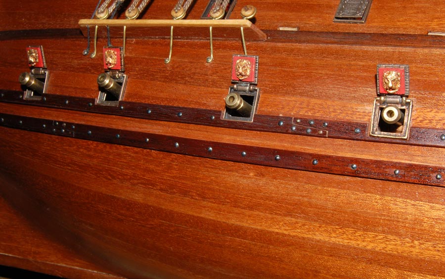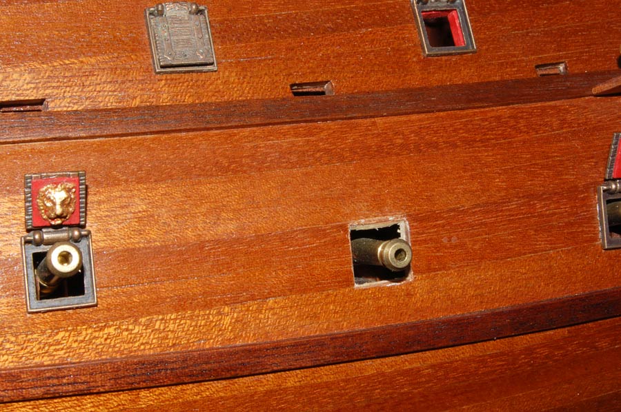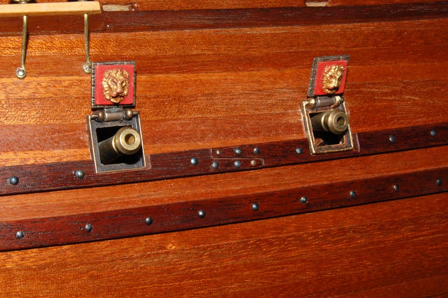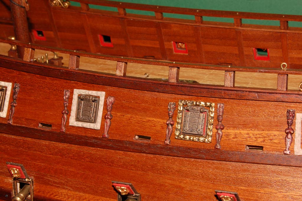 Pole działania to powierzchnia nadburć pomiędzy górną listwą a parapetem. Wokół ambrazur (na burcie są cztery) zdobne ramy i aby zachować "rytm", to tam gdzie nie ma ambrazur będą głowy lwów (kolejne cztery ramki - razem będę potrzebował szesnaście), pomiędzy nimi "panoplia" - głównie wzorowane na SotS (również szesnaście na obie burty). No i tyle w skrócie