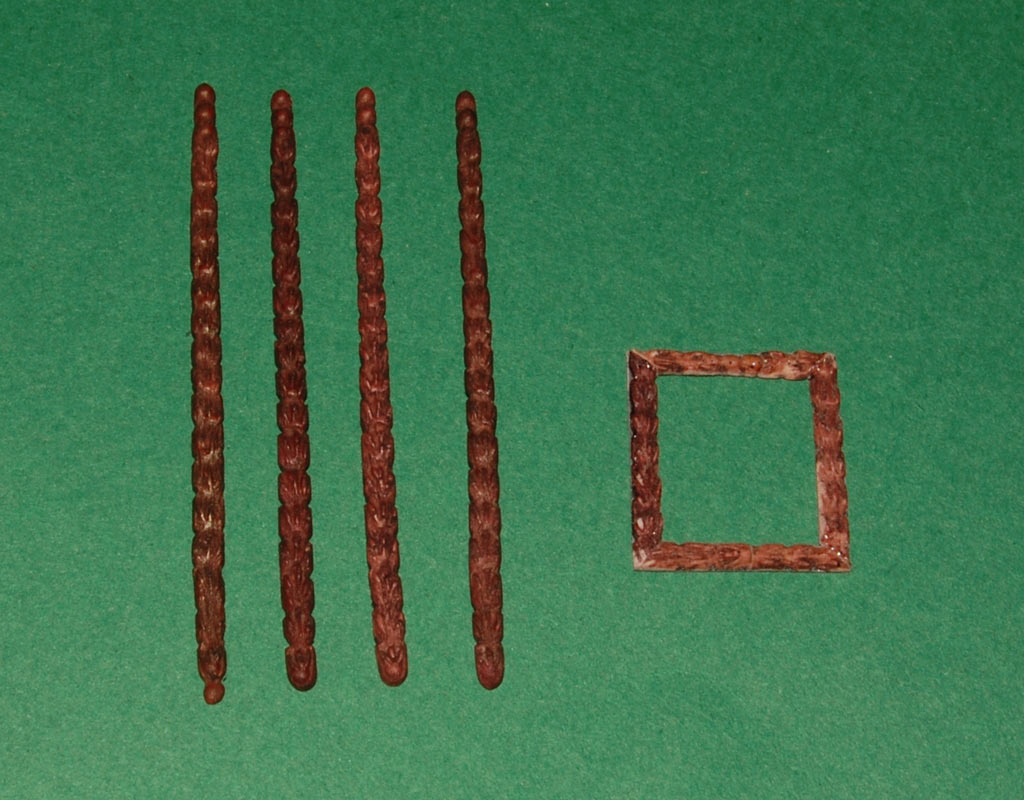 Najpierw zrobiłem prtotypowe ramki - wykorzystałem elementy, które robiłem do podpór balkonu (tu już zabejcowane).