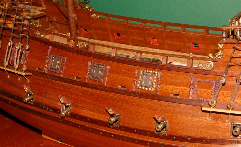 Kolejnym wyzwaniem jakie przed sobą postawiłem to zdobienia na burtach. Nie było to "nagminnie" stosowane na galeonach - głównie na galerach i jachtach królewskich, ale i galeony się zdarzały