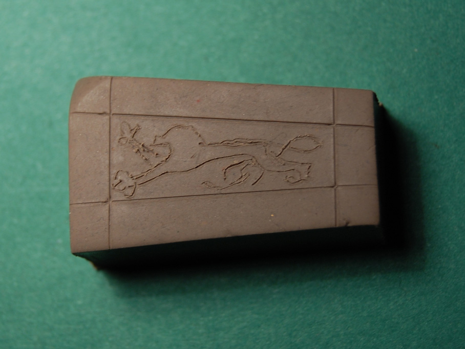 W plastelinowym "placku", który posłuży za formę określam pole "rzeźbienia" (w wypadku panopli to 15 x 25 mm) i robię igłą wstępny rysunek