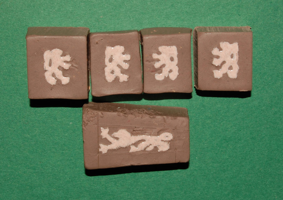 czyli jak nie chce mi się rzeźbić, wykorzystuję "gotowce" - w tym wypadku są to odciski w plastelinie odznak herbów polskich miast (za szczeniaka obowiązkowe kolonie letnie w różne rejony naszej kochanej Ojczyzny i obowiązkowo kupowałem odznaki herbów w kioskach Ruchu