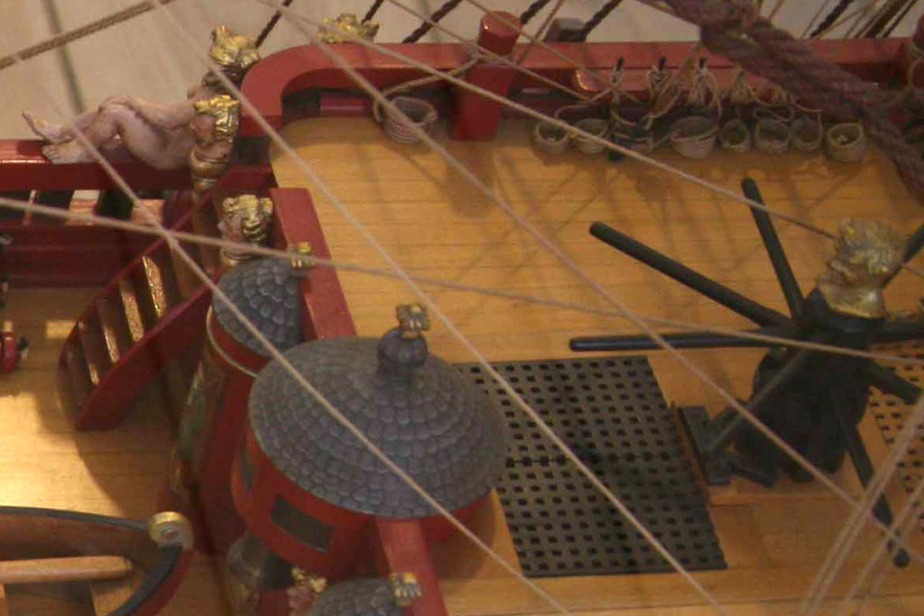 znalazłem taką ozdobę na duńskim modelu Sophie-Amalia (1650), no i na modelu Sovereign of the Seas Doris.