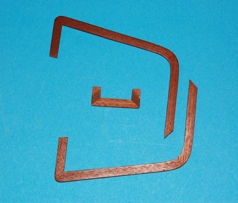 Jednak doszedłem do wniosku, że skoro model był od samego początku robiony w konwencji "drewnianej" czyli odpowiedni gatunek drewna zastępuje jakiś tam kolor, takie wprowadzenie dużej ilości czerwonego koloru może być trochę dysonansem (no i brak deskowania), więc wybrałem opcję trudniejszą i bardziej pracochłonną, ale bezpieczną, mianowicie oklejanie fornirem mahoniowym (sapeli, meranti czyli to co jeszcze mam i z czego było robione poszycie).
