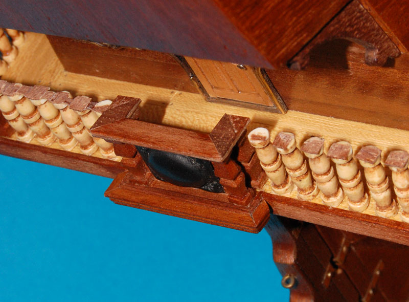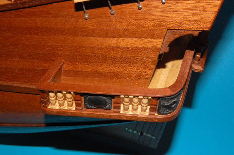 Do barierki na ćwierćpokładzie też dodawałem tralki, ale zmodyfikuję ją jeszcze raz na wzór galerii rufowej.