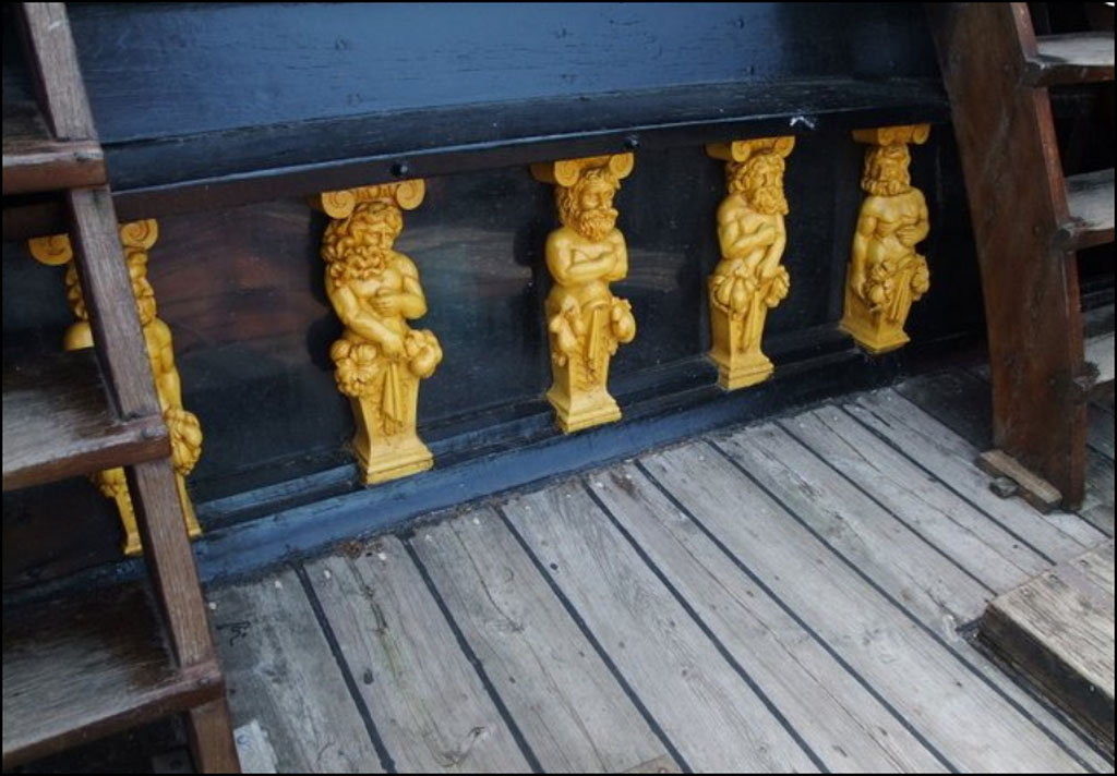 Na Vasie, Batavii (czy na innych jednostkach holenderskich) słupki w budce sternika są bardziej zdobne,