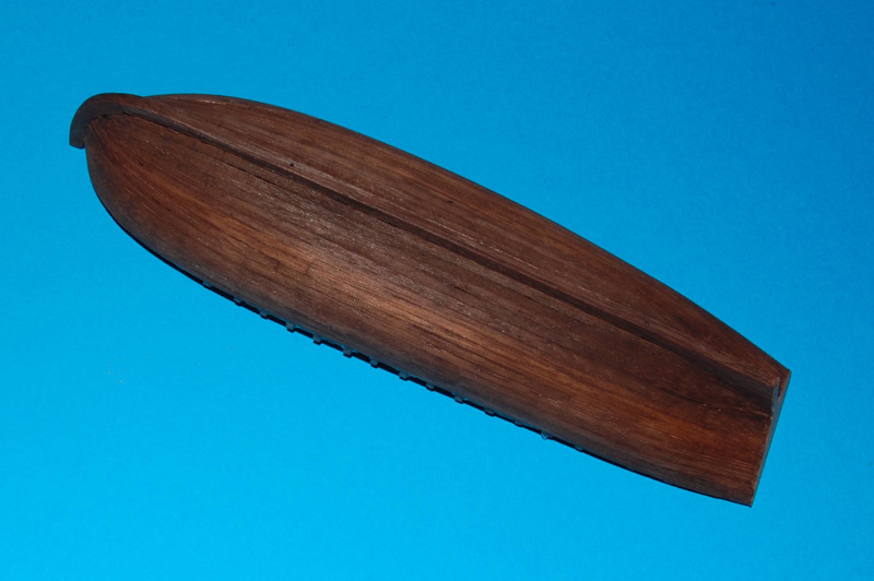Po jej wklejeniu, i przycięciu listew na rufie, fornirem sapeli okleiłem pawęż.