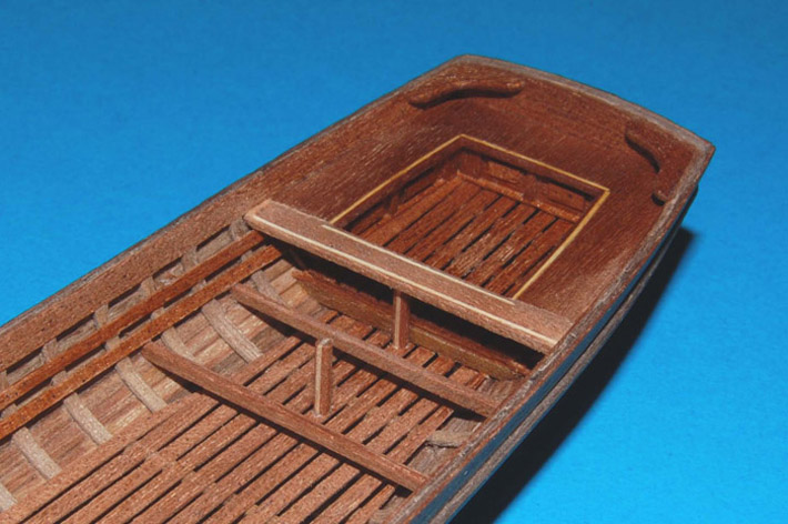 W drugiej szalupie zrobiłem zabudowane ławki (na wzór z planu, tak chciałem zrobić w pierwszej, ale zaniechałem). Zrezygnowałem natomiast z dekoracji w intarsji, ale nie mogłem sobie odmówić wszystkiego .
