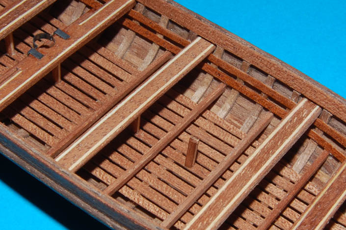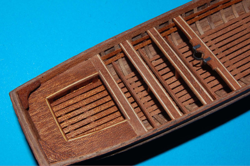 Z trudem, ale zrozumiałem aluzję (po 3 PW wyjaśniających ;) ) do niewidocznego kilsona (nadstępki), ale przyjmijmy, że jest (kilson), tylko tej samej szerokości co listwy gretingów, więc się nie wyróżnia ;) . Gdyby to była mniejsza łódź zrobiłbym jak w l'Hermione