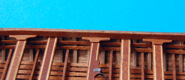 i nie mając wzorca (hiszpańskiego) pozwoliłem sobie na takie uproszczenie (uprościłem sobie też zakończenie gretingów na dziobie, raczej powinno być jak na pierwszej fotce lub podniesione jak na rufie). :)