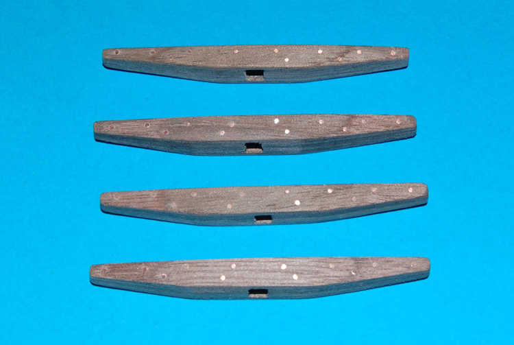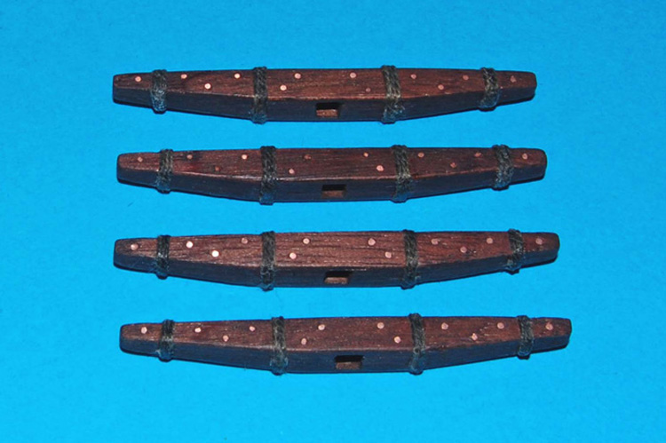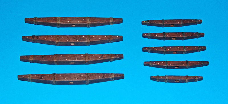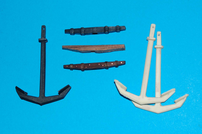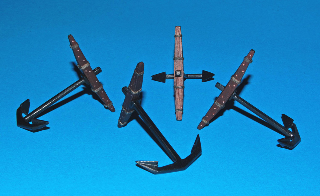 Kolejnym elementem będą kotwice (co prawda mam cztery kotwice zestawowe, ale wykonam je od podstaw ze zmianami i z waloryzacją). Belki poprzeczek wykonam z orzecha amerykańskiego z gwoździowaniem i owijką z linki.