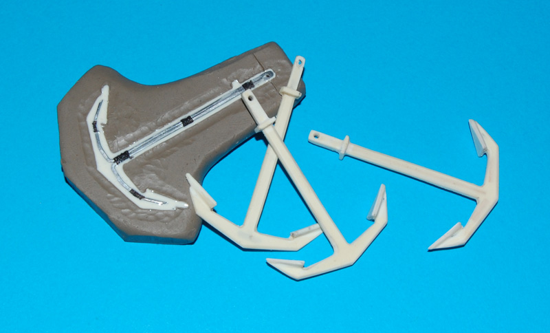 Porównałem kotwice HMS Victory i Santisima Trinidad. Różnice w skali obu modeli są niewielkie, przypomnę V skala 1:84, ST 1:90, a jak widać na fotce kotwica do modelu Victory jest prawie 2x większe od kotwicy Santisima Trinidad.