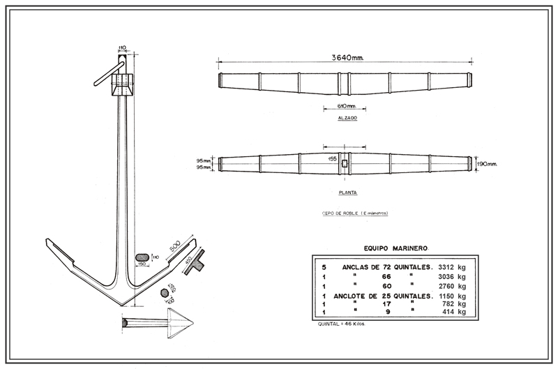 Po porównaniu kotwic Victory i Santisimy zrodził się dylemat, czy aby poprzeczka kotwicy Santisimy nie jest za krótka (lub belka Victory za długa - sprawdziłem proporcje długości trzonu do długości belki w dostępnej mi literaturze).