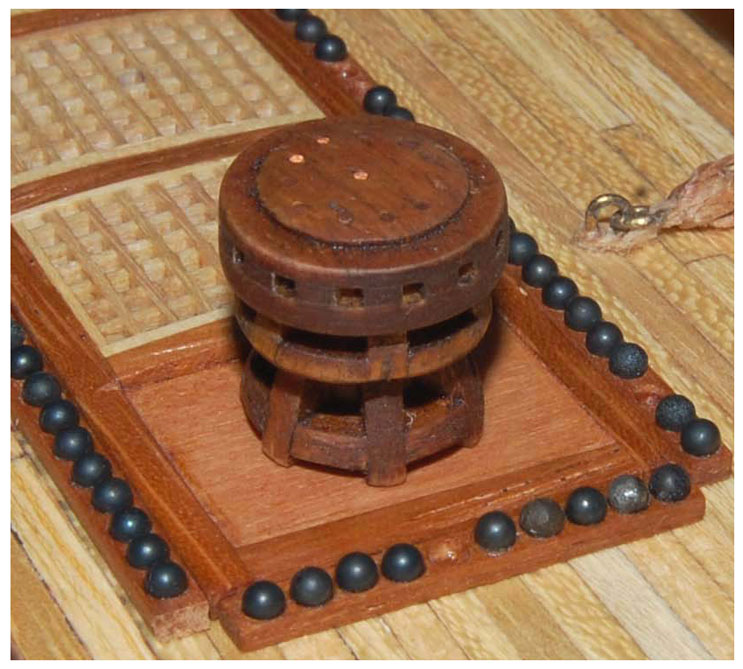 Beczki, jak również trójkątne pojemniki będę wklejał w późniejszym terminie. Nie podjąłem też decyzji co do handszpaków (luzem czy w kabestanie) to też pozostawiam na potem ;) ).
