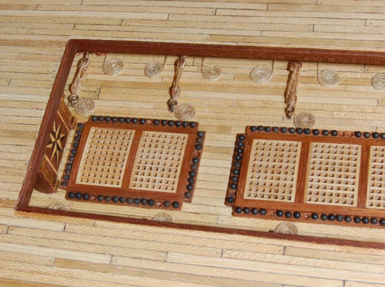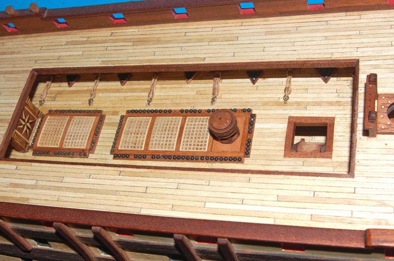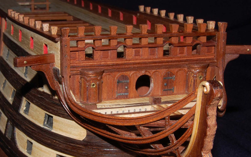 Użyłem tych samych pokładników, chociaż chciałem zmienić na belkę dwuczęściową (jak na HMS Victory). Podobne rozwiązanie zrobił wydawca (AL) zestawu Santa Ana, ale cały ten zestaw przypomina Victory (różnicę stanowi jedynie pawęż i kąt bukszprytu).