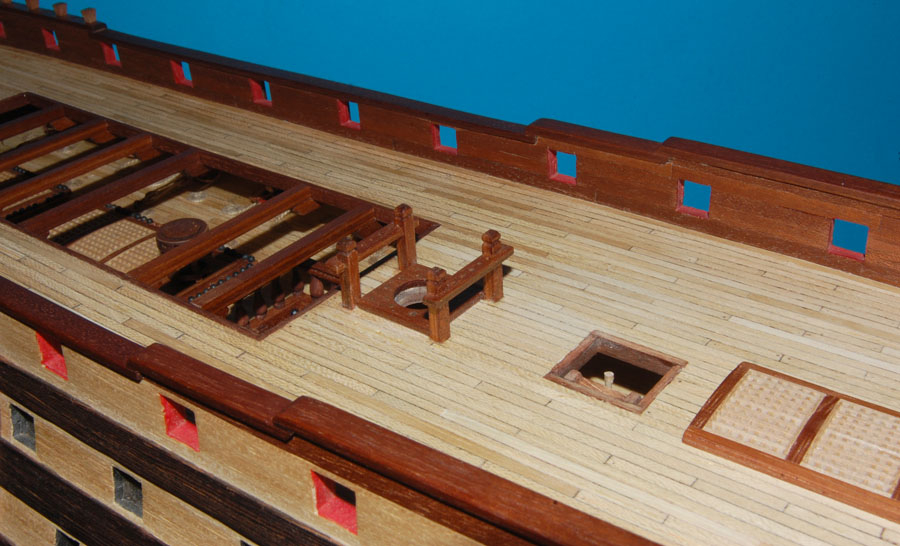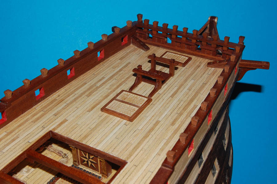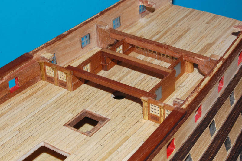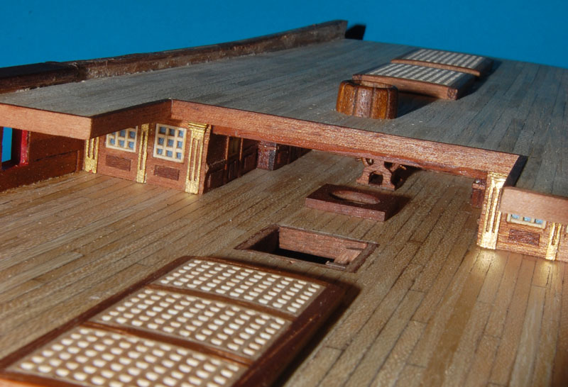 oraz opętnik bezanmasztu. Wyciąłem środkową, widoczną w luku na pokładzie rufówki, część pokładnika, pozostawiając część na której spocznie pokład.