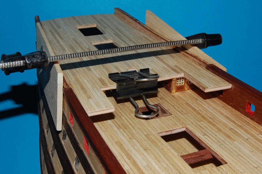 Natomiast usytuowanie koła sterowego względem bezanmasztu nie było zawsze i na każdym okręcie takie samo, co rzecz jasna wpływało też na miejsce mocowania naktuza do pokładu. Początkowo, przy słabo jeszcze rozwiniętym mechanizmie sterowniczym, trzymano się blisko rufy, więc koło i naktuz były przeważnie za bezanmasztem.