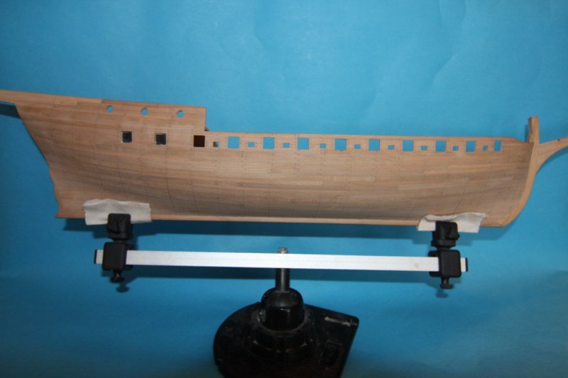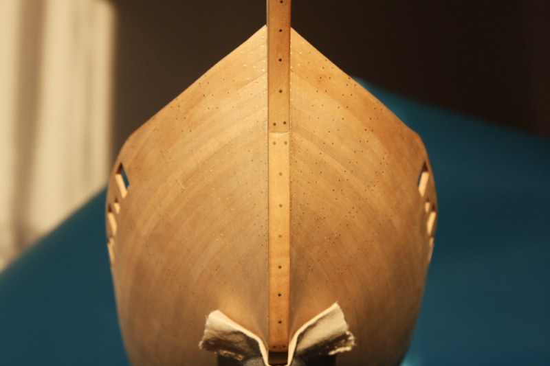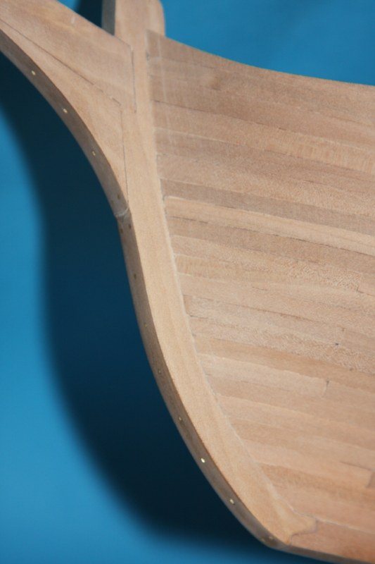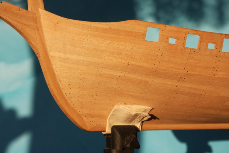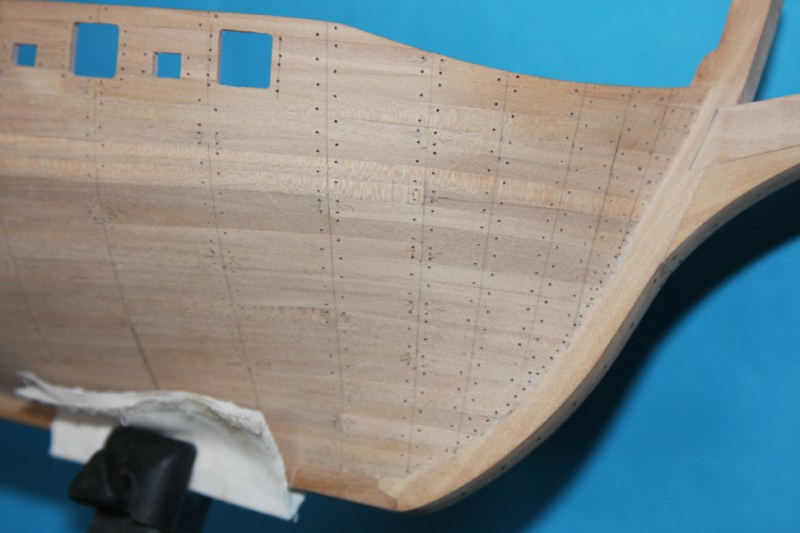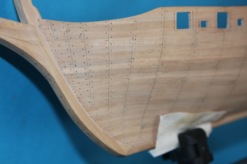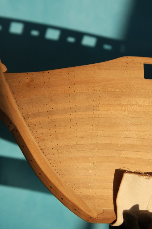 Bardzo dziękuję za uwagę.Niestety nie potrafię sie do niej ustosunkować.Jest to tylko model zestawowy,w którym w ogóle nie było planowane gwoździkowanie,a że nie posiadam planów jest to tylko moja wolna twórczość artystyczna.Jeśli ktoś z oglądających moje wypociny posiadałby zdjęcie rufy jakiegoś modelu szebeki byłbym wdzięczny.Na tym etapie można jeszcze wszystko skorygować.