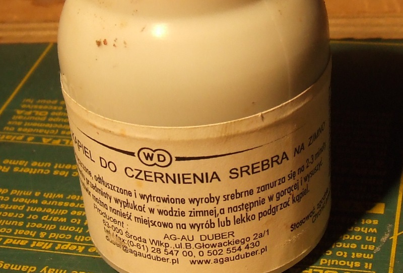 Świetnie czerni srebro i miedz, słabo mosiądz, natomiast nie czerni cyny.