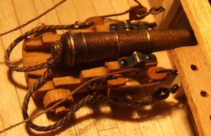 Szkuner ma ukończone fały armat (wszystkich 8-miu).