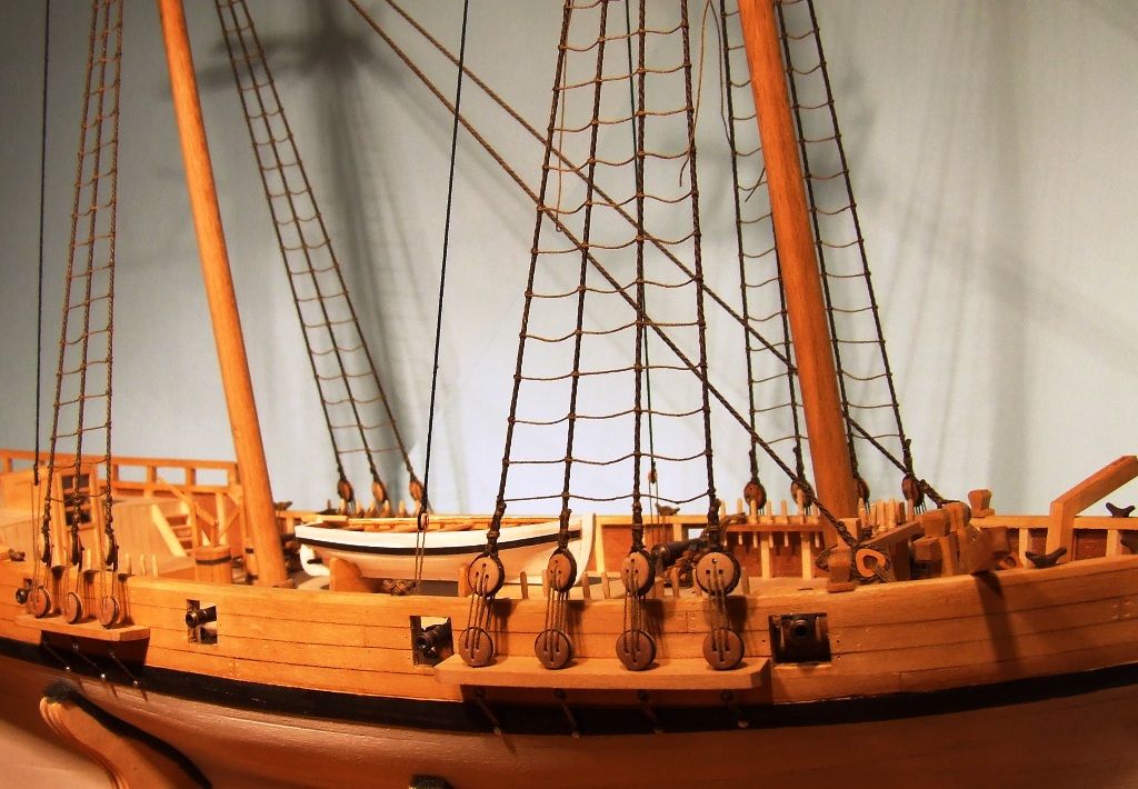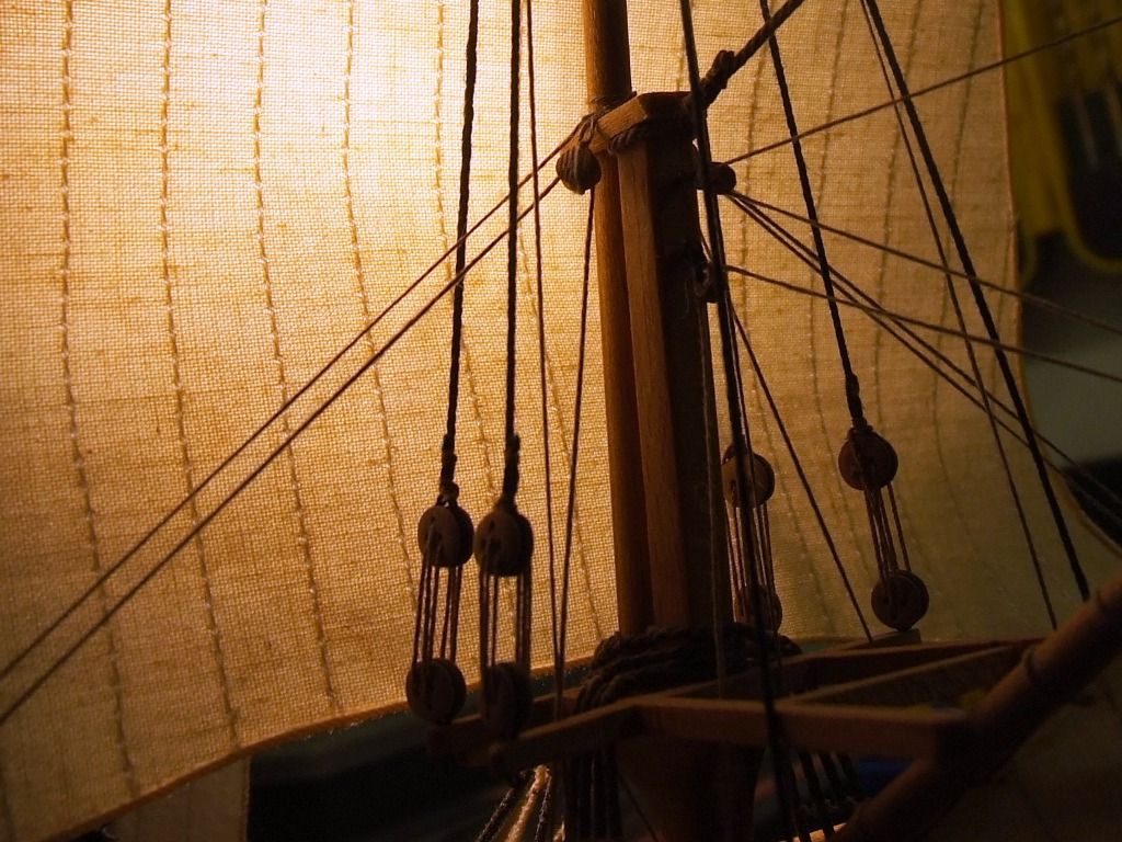 Wanty i wyblinki super.Talrepy rzeczywiście powinny być mniejsze trochę powyżej połowy średnicy masztu przy podstawie.Liny jufersa jasne ponieważ zmieniano naprężenie want w trakcie eksploatacji.Te linki należą do olinowania ruchomego.Nie powinny być czarne.R