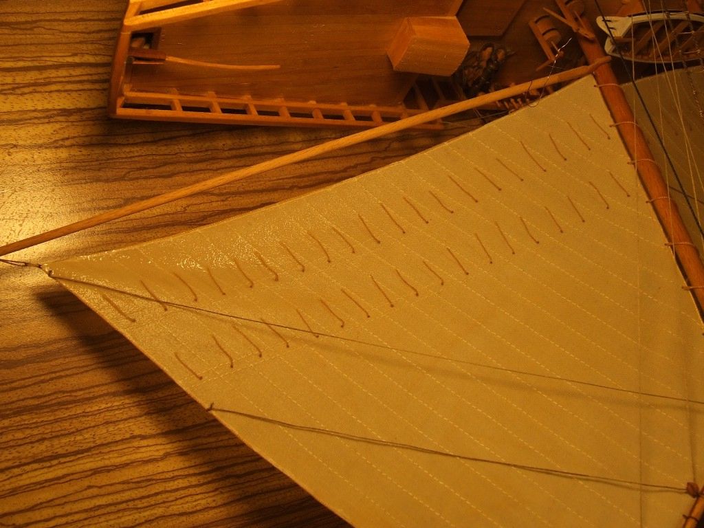 Przeciągnąłem krochmalem szoty i fały. Po wyschnięciu będą wyglądały na naciągnięte.